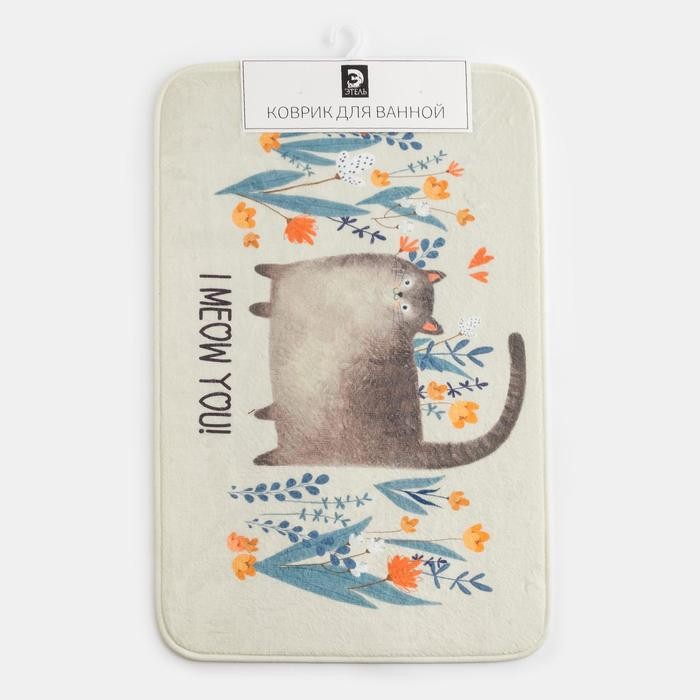 Коврик для ванной Этель «I meow you», 80×50 см, велюр