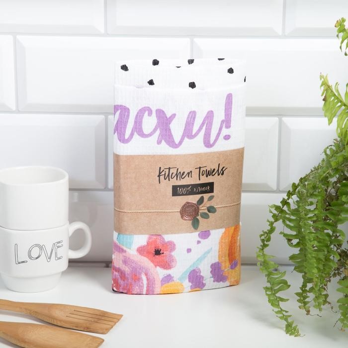 Набор кухонных полотенец Доляна Пасхальное чудо 35х60см-2 шт, 100% хл, вафля 160 г/м2