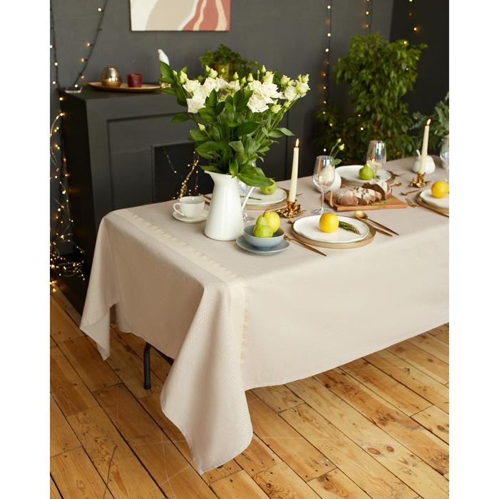 Скатерть Этель 240×165 см, цв. кофейный с золотой нитью, 100% хлопок, 163 г/м2