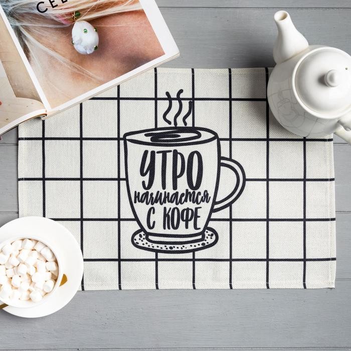 Салфетка на стол Доляна «Утро начинается с кофе», 30×45 см, полиэстер 100%