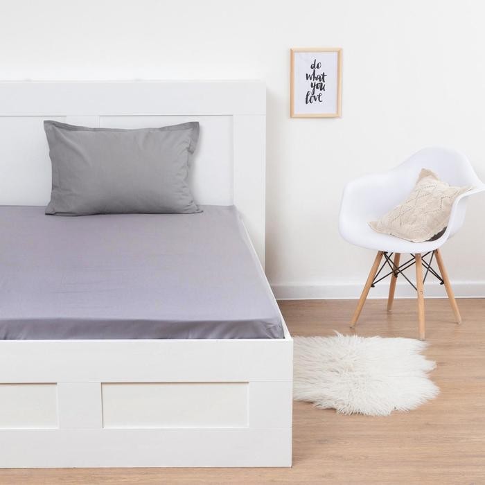 Простыня на резинке Этель 140*200*25 см, цв. серый, 100% хлопок, мако-сатин, 128 г/м²