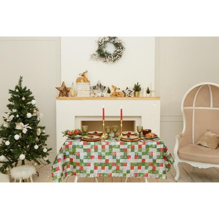 Скатерть Доляна «Новый год: Новогодняя мозаика» 145*260 +/- 2 см, 100% п/э
