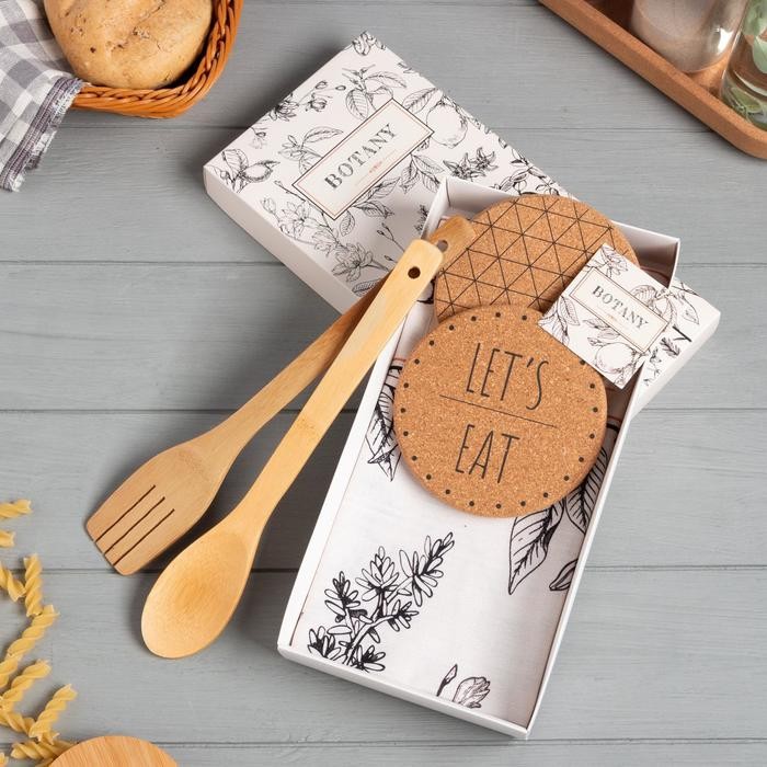Набор подарочный Botany: полотенце, подставки, кухонная ложка, кухонная лопатка
