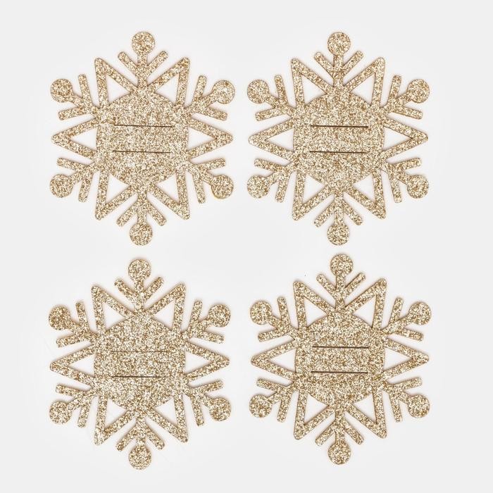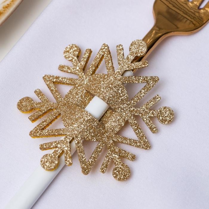 Набор для декора столовых предметов «Снежинка», 4 шт, цв. золото 6,5×7,5 см, 100% п/э, фетр 626 098