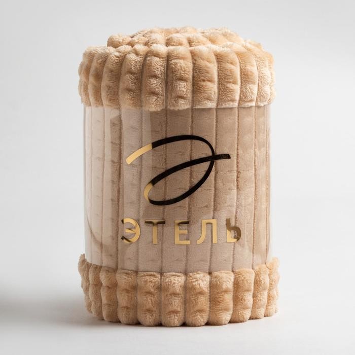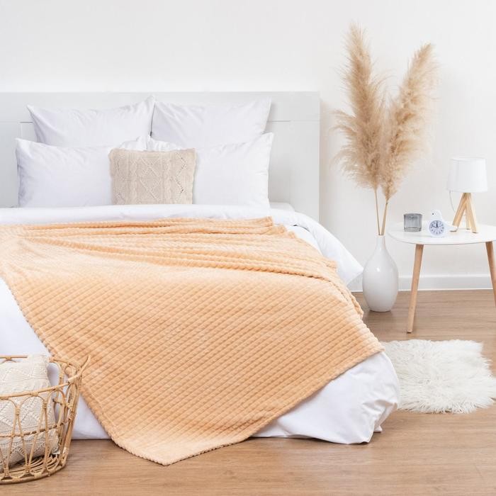 Плед Этель «Клетка» 200*220 см, цв.бежевый, корал-флис, 240гр/м2, 100% полиэстер
