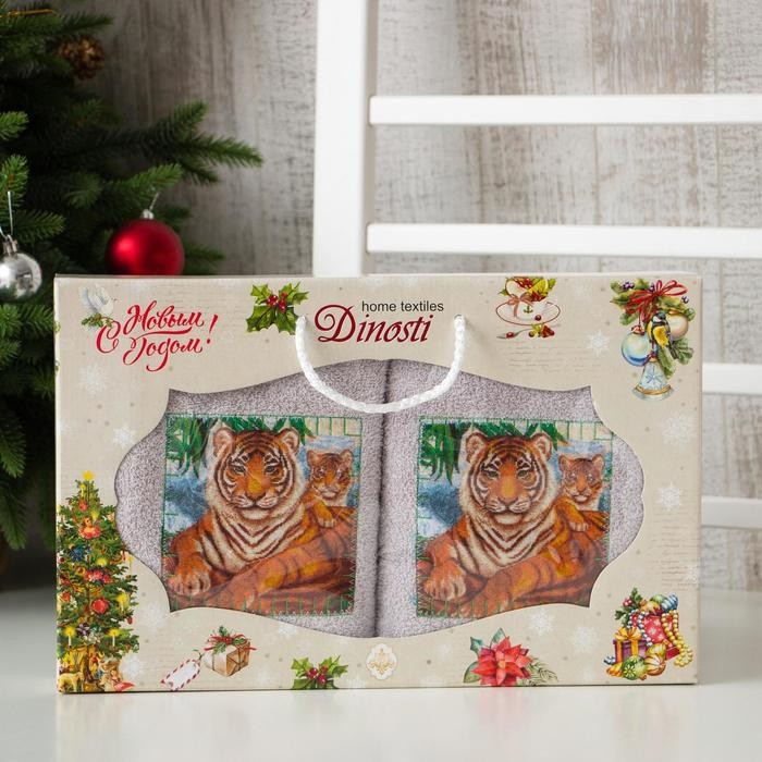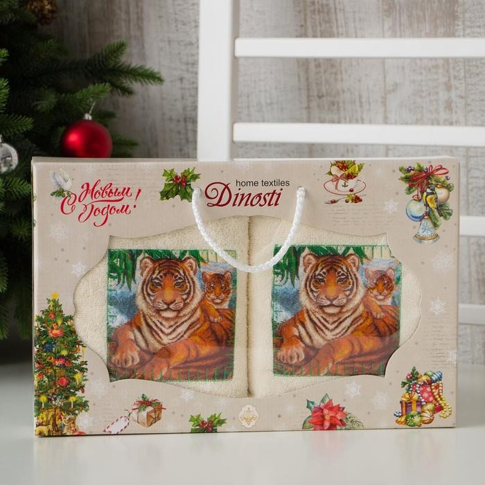 Новогодние полотенца (подарочный набор 2 шт.) Королева джунглей 40х70см, бежевый, хлопок 100%, 400г/м2