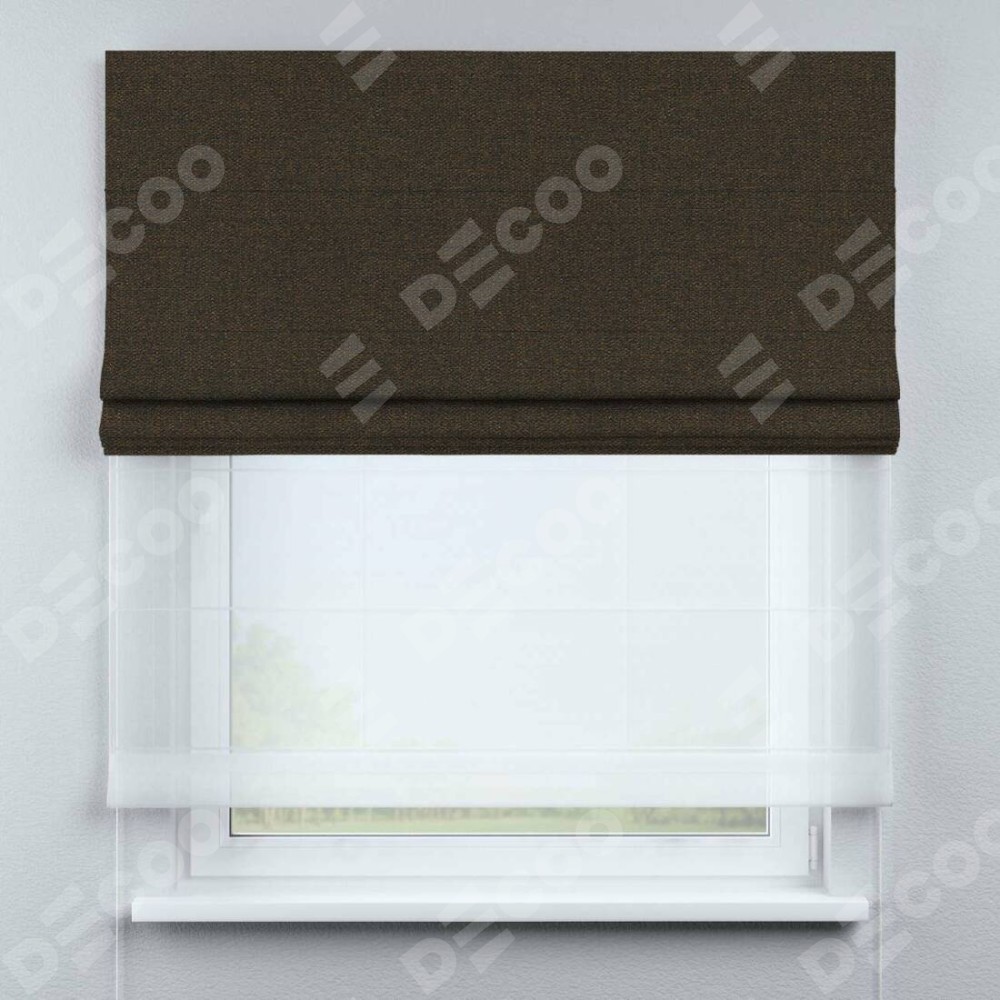 Римская штора «Кортин» двойная, лён тёмно-коричневый
