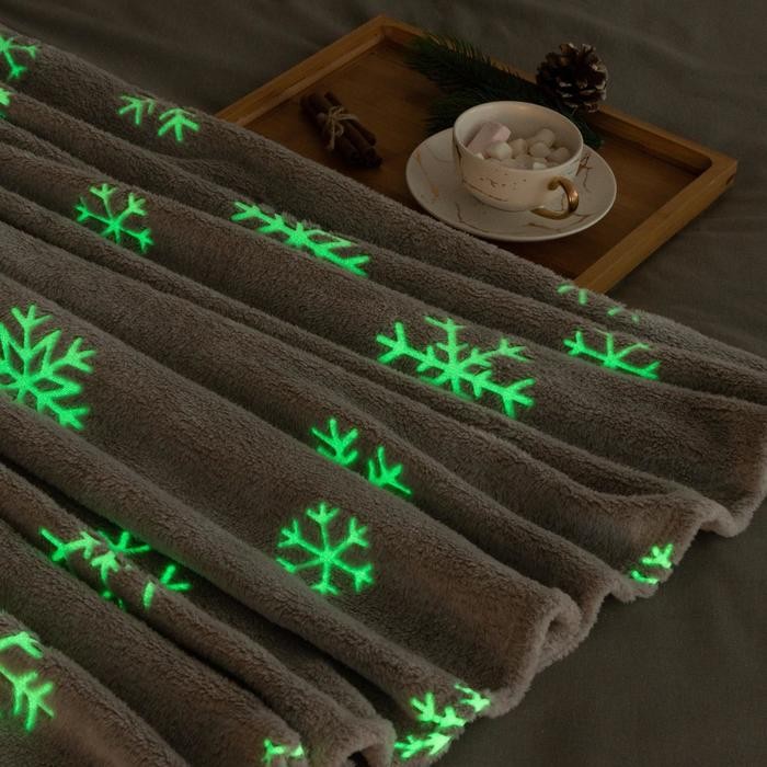 Плед светящийся в темноте Этель «Снежинки» 200*220 см,100% п/э, корал-флис, 220 гр/м2