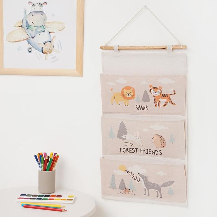 Кармашек текстильный Этель «Forest friends», 3 отделения, 34*63,5 см