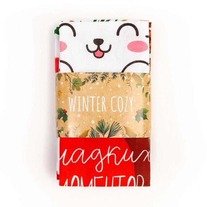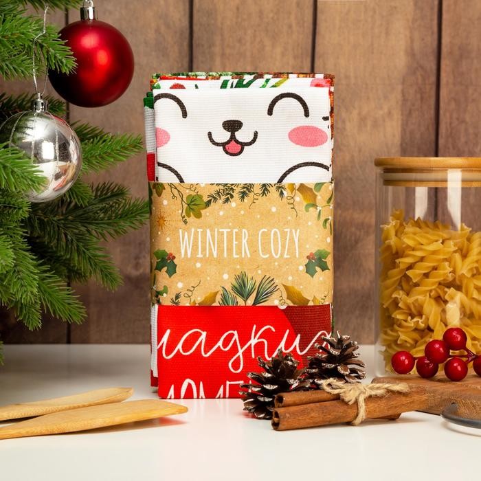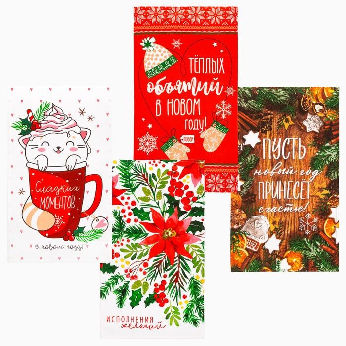 Набор кухонных полотенец Доляна «Новогоднее настроение» 35х60см-4шт, 100% хл