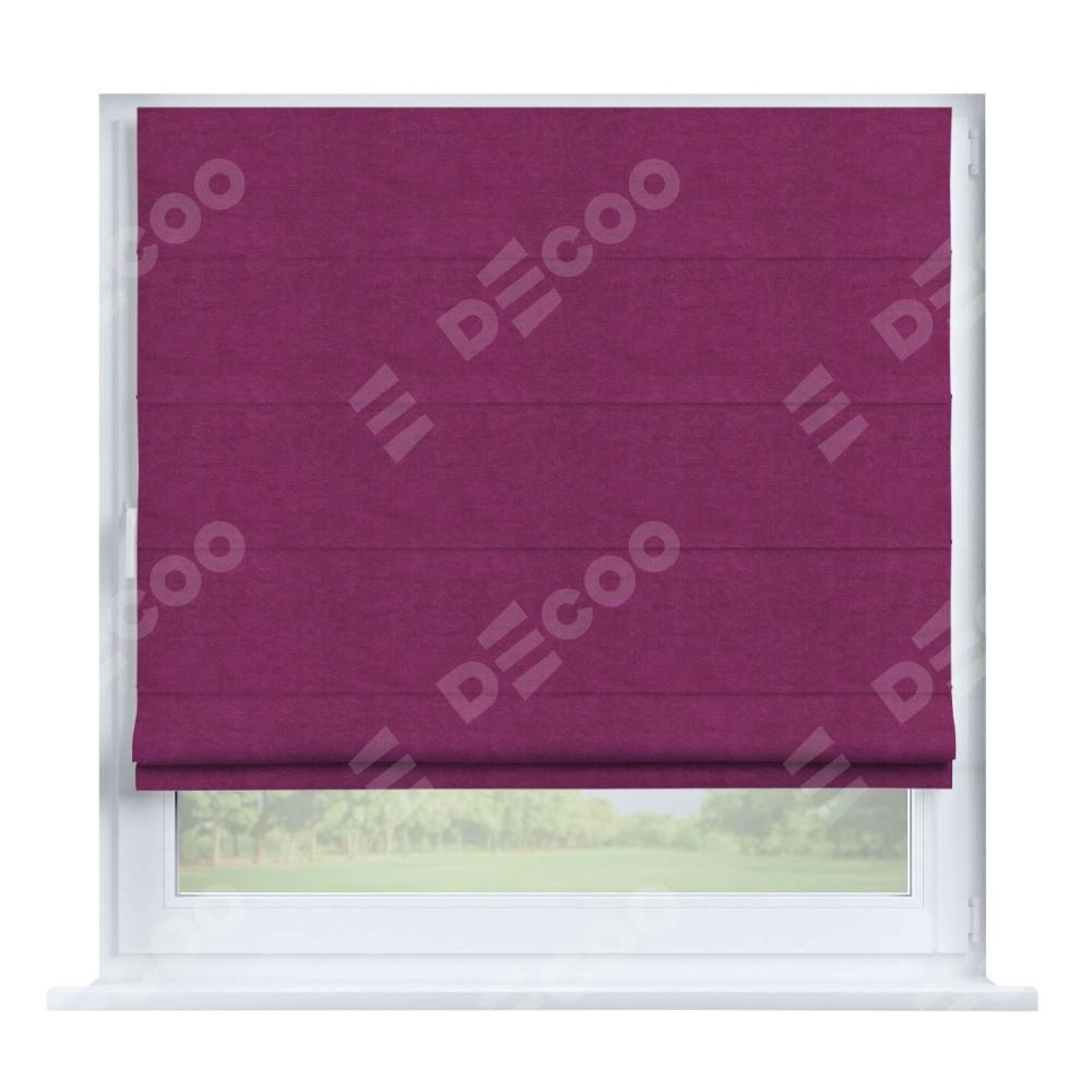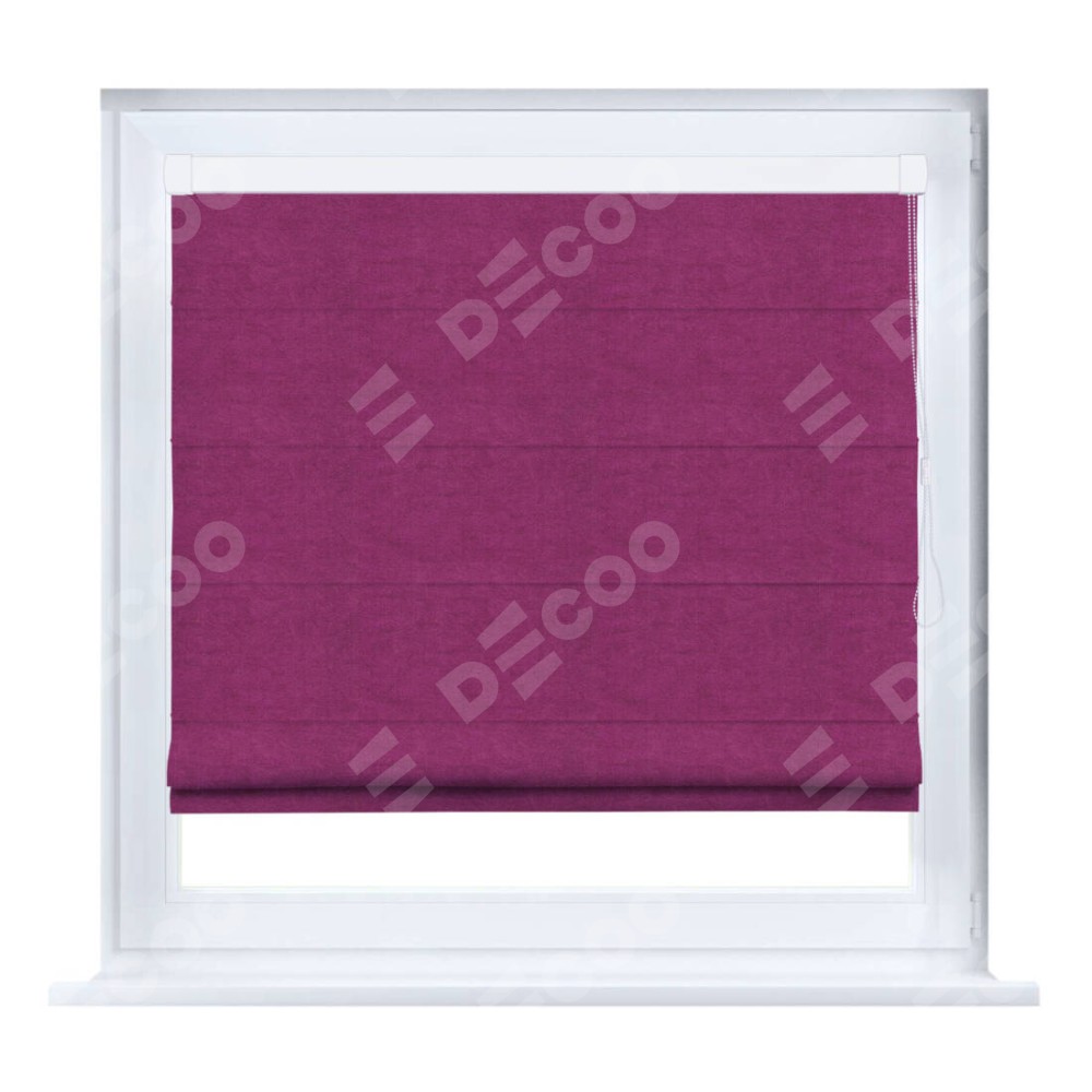 Римская штора производителя «Cortin», устанавливается на створку окна, пошита из ткани вельвет фиолетовый, артикул 85552. Штора шьётся по индивидуальным размерам, для данного типа римской шторы возможная ширина от 35 до 150 см., высота до 250 см.