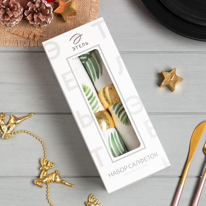 Набор салфеток с декорат. кольцами «С Новым Годом» 40×40 см — 2 шт, 100% хл, саржа 190гр/м2