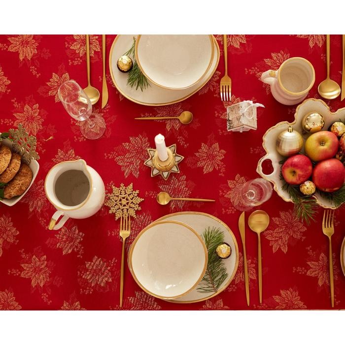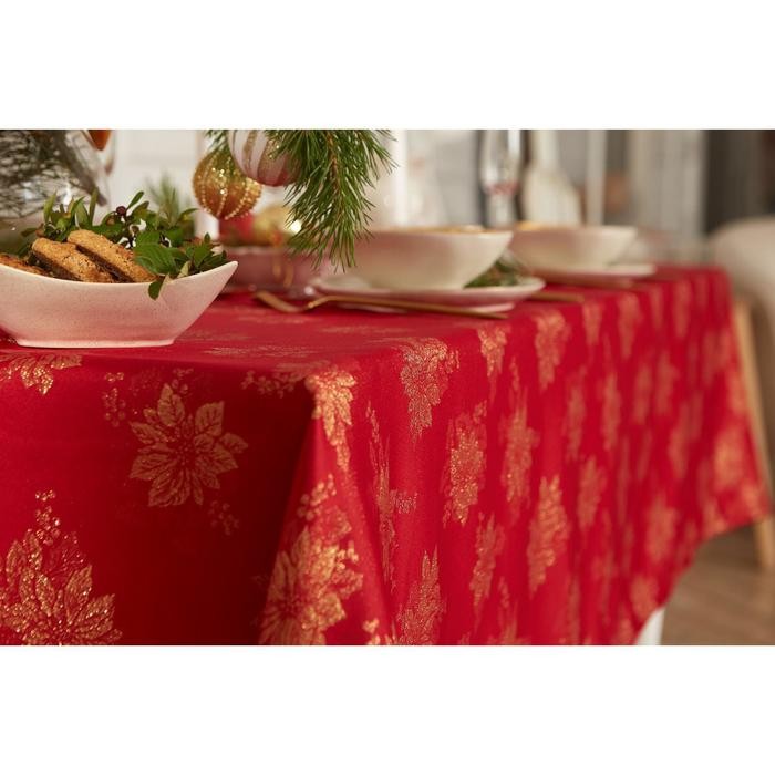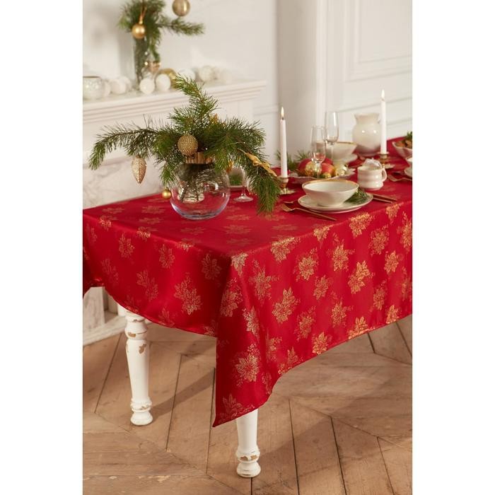 Скатерть Этель «Пуансеттия» цв.красный, 142*110 +/-3 см, 115 ±10 гр,100% п/э