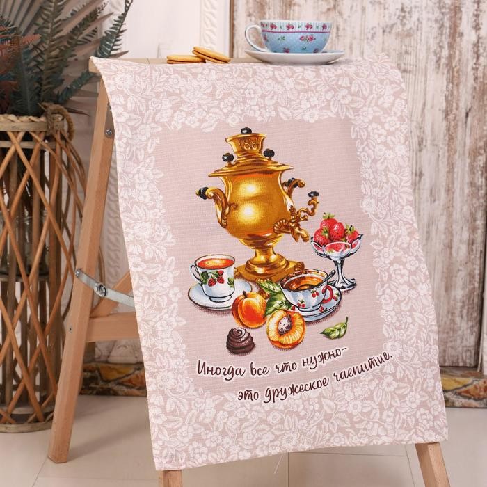 Полотенце 45×60 см, Дружеское чаепития (рис. 1), вафля, 170 гр/м2, хлопок 100%