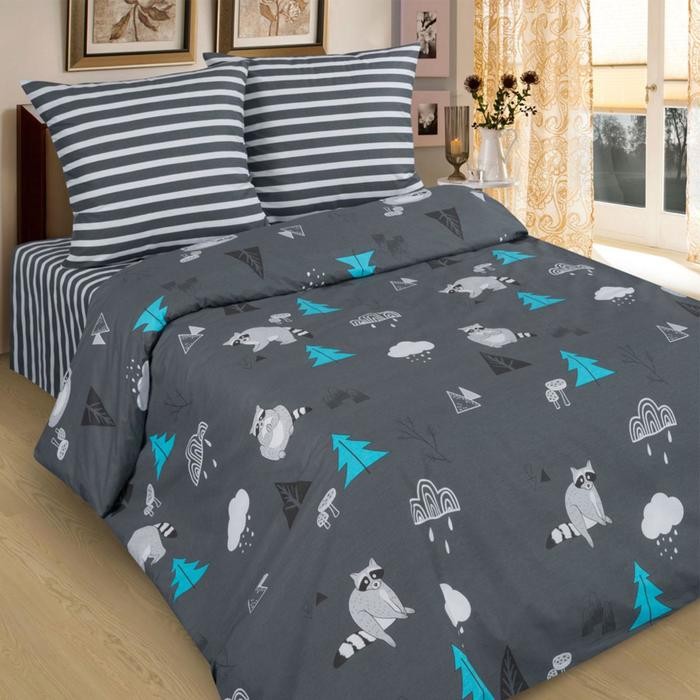 Постельное бельё 1,5 сп «Pastel Еноты», размер 147×217 см, 150×220 см, 70×70 см, 2 шт, поплин, 100% хлопок