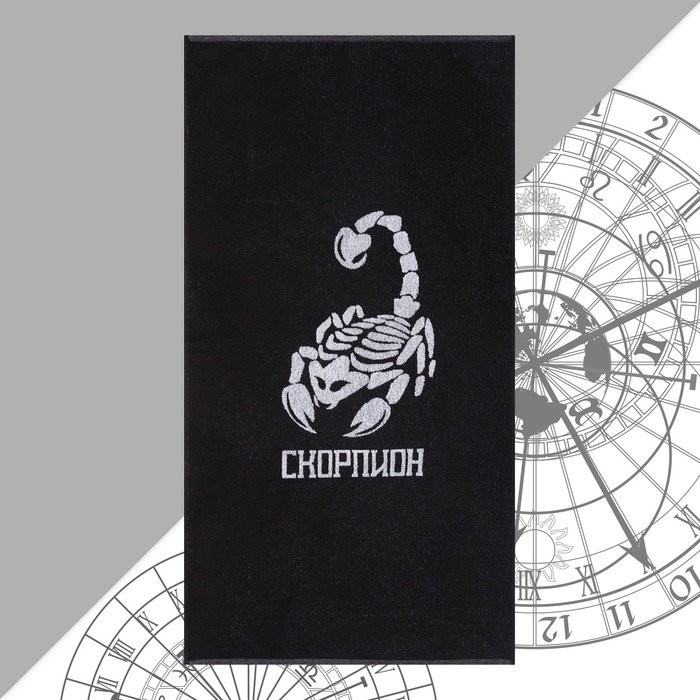 Полотенце махровое Этель «Знаки зодиака: Скорпион» чёрный, 67×130 см, 420 гр/м2, 100% хлопок