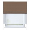 Римская штора день-ночь производителя «Cortin», используется для проёма, пошита из двух полотен, с лицевой стороны блэкаут однотонный коричневый артикул 88285, вторая ткань тюль (по стандарту комплектуется тюль белого цвета артикул V-01). Имеет универсальный механизм и подходит для монтажа: на потолок, на стену и в нишу.