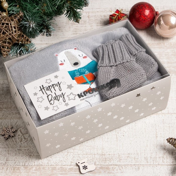 Подарочный набор Крошка Я «Мишка», плед 90х100см, пинетки 10−12 см