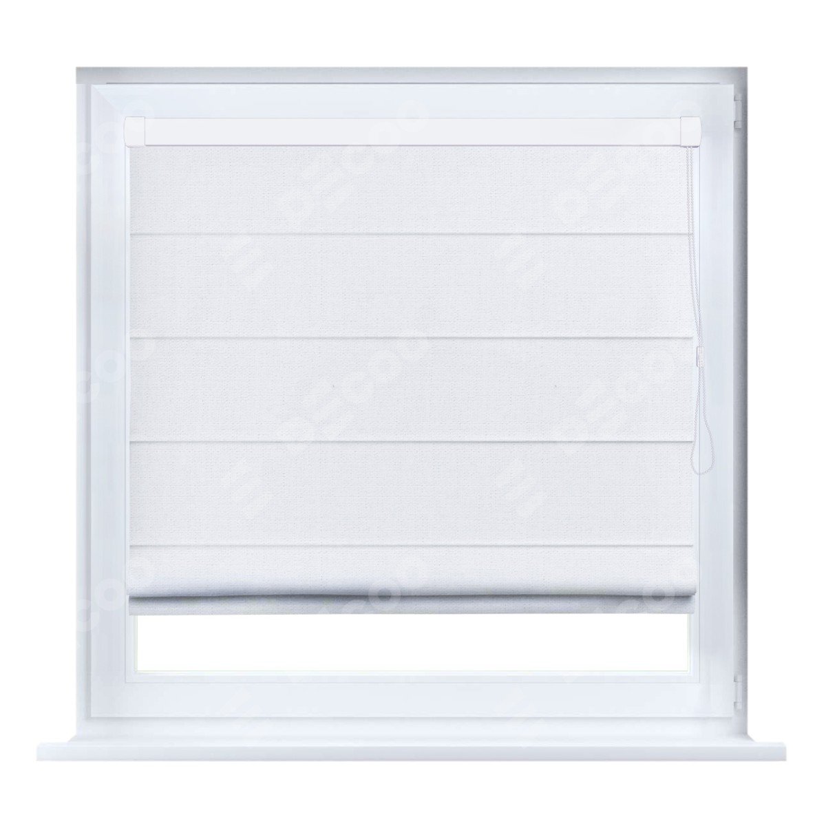 Римская штора кассетного типа, производителя «Cortin», устанавливается только на пластиковые окна и прилегает к стеклопакету, пошита из ткани лён белый, артикул 53430.