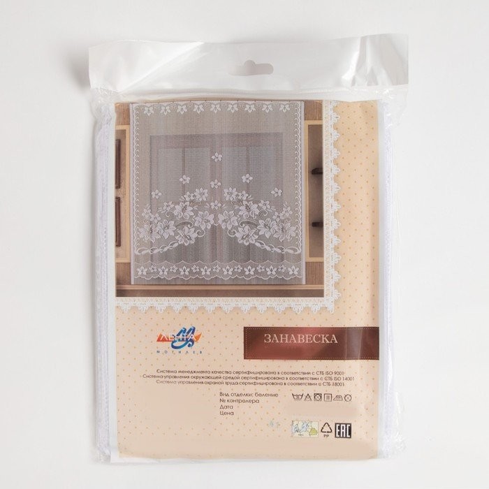 Тюль для кухни без шторной ленты, 175×145 см, цвет белый, полиэстер 100%