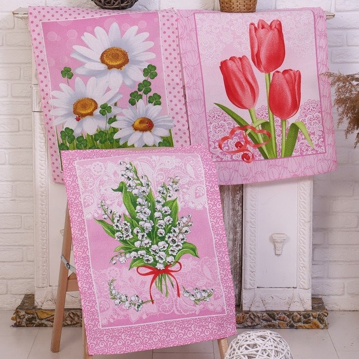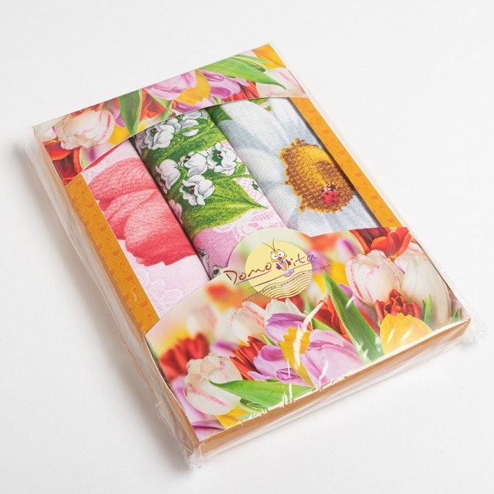 Набор полотенец в коробке Букетики 45×60 см, 3 шт, розовый, вафля, 170 гр/м2, хлопок 100%