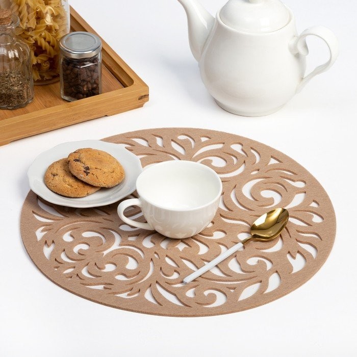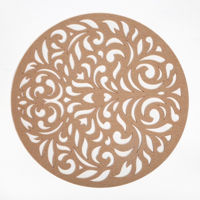 Салфетка декоративная Доляна"Узоры» цвет бежевый, d 30 см, 100% п/э, фетр