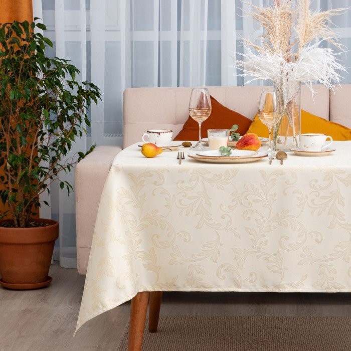 Скатерть Этель «Patterns» цвет золотой, 142*283 +/-3 см, 115 ±10 гр,100% п/э
