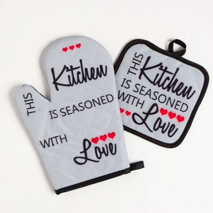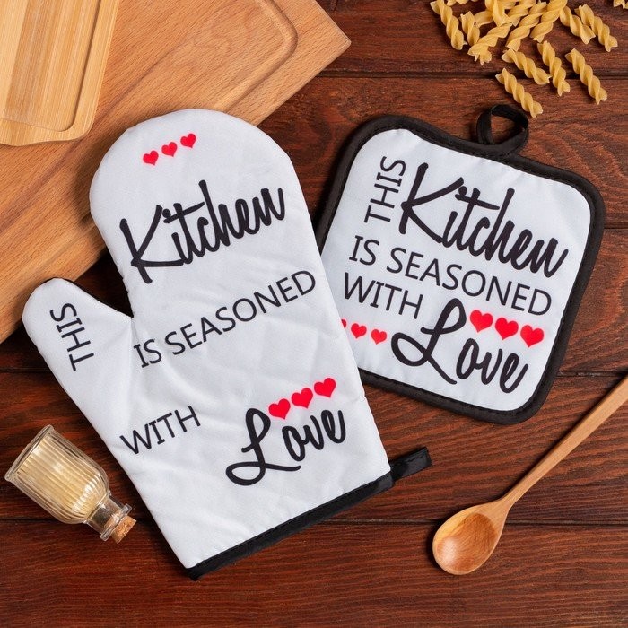 Кухонный набор (2 предмета) Доляна Kitchen, прихватка 17×17 см, варежка 26×16 см, 100% п/э