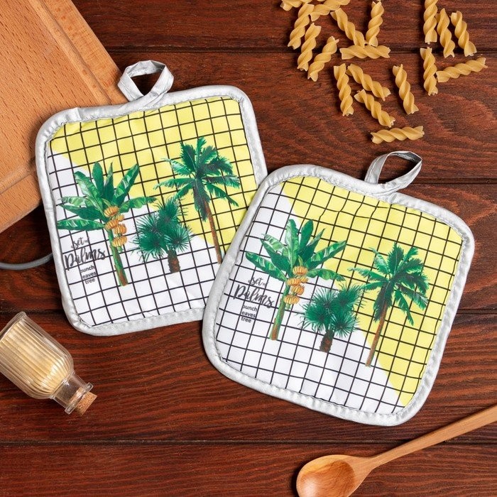 Кухонный набор (2 предмета) Доляна Palms, прихватка 17×17 см — 2 шт, 100% п/э