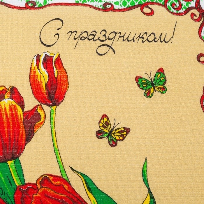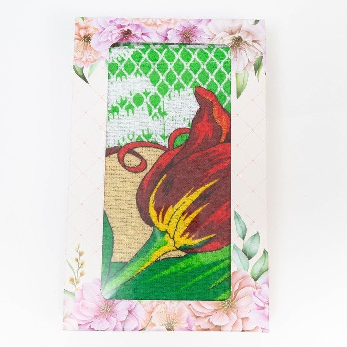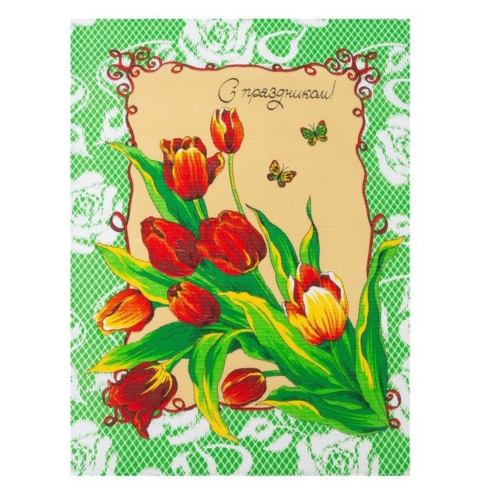 Полотенце в коробке 45×60 см, С праздником, салатовый, вафля, 160 гр/м2, хлопок 100%