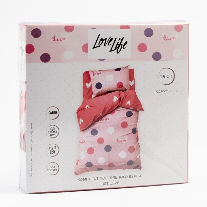 Постельное бельё 1.5 сп «LoveLife» Just love, 143×215 см,150×214 см,70×70 см-1 шт. сатин