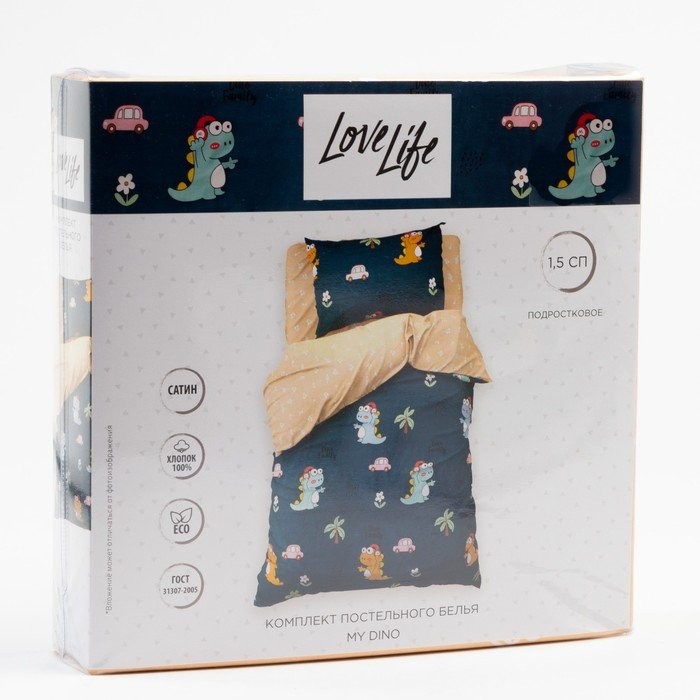 Постельное бельё 1.5 сп «LoveLife» My dino, 143×215 см,150×214 см,50×70 см-1 шт. сатин