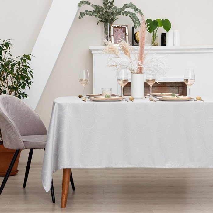 Скатерть Этель «Круги» цв.серебро, 142*220 +/-3 см, 115 ±10 гр,100%