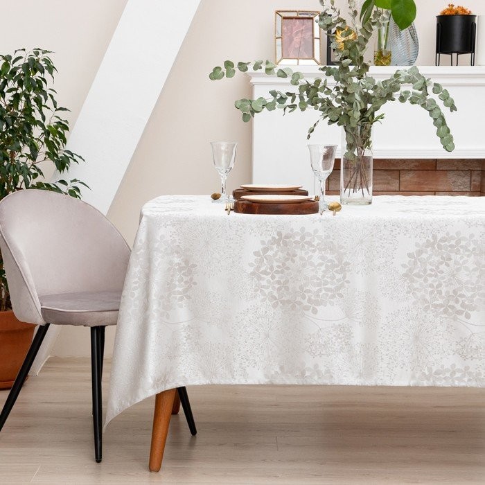 Скатерть Этель «Flowers» цв.серебро, 142*180 +/-3 см, 115 ±10 гр,100% п/э