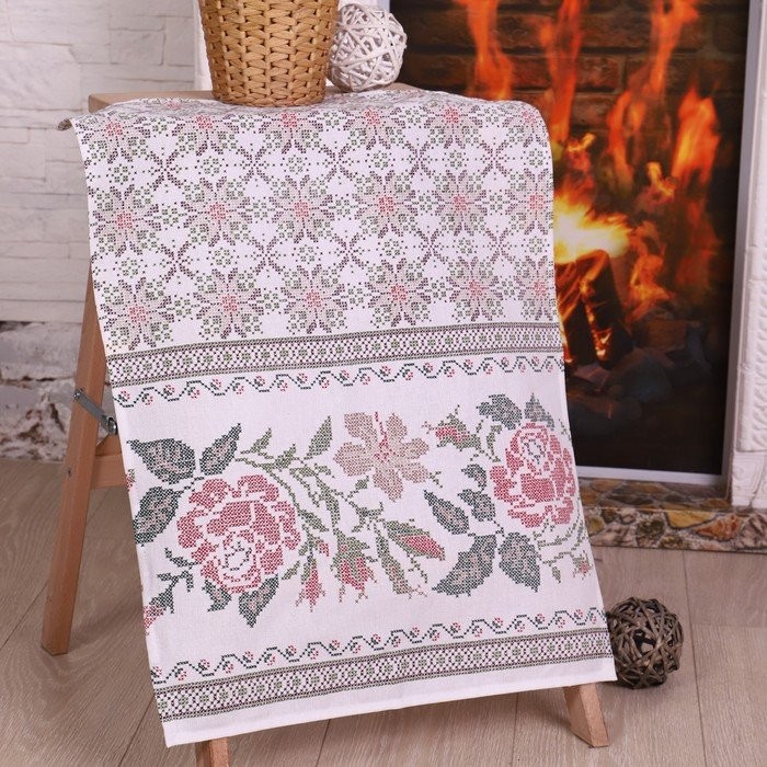 Полотенце 50×70 см, Розочки, рогожка, 170 гр/м2, хлопок 100%
