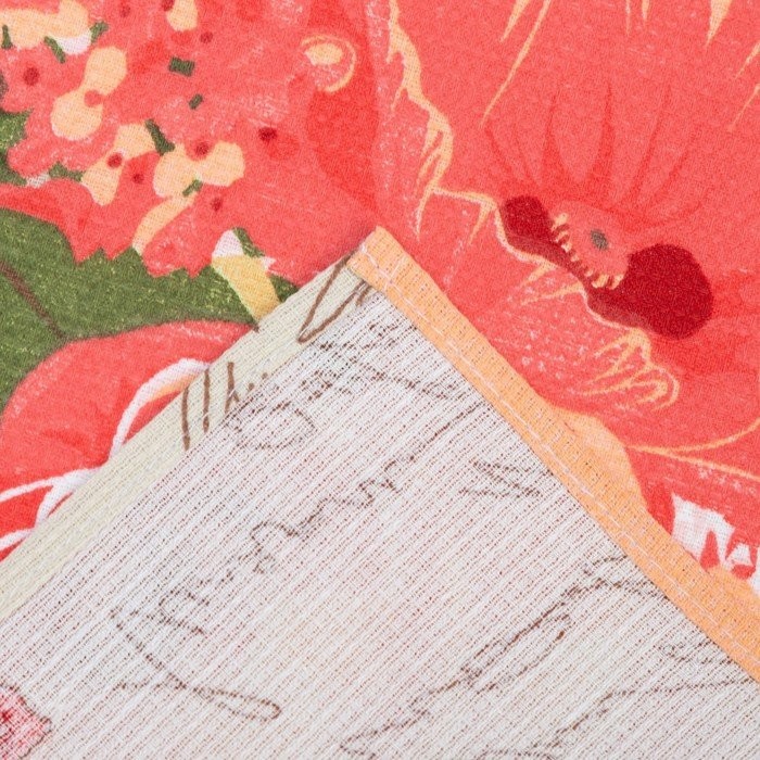 Полотенце 35×60 см, Букет розы-маки, песочный, вафля, 160 гр/м2, хлопок 100%
