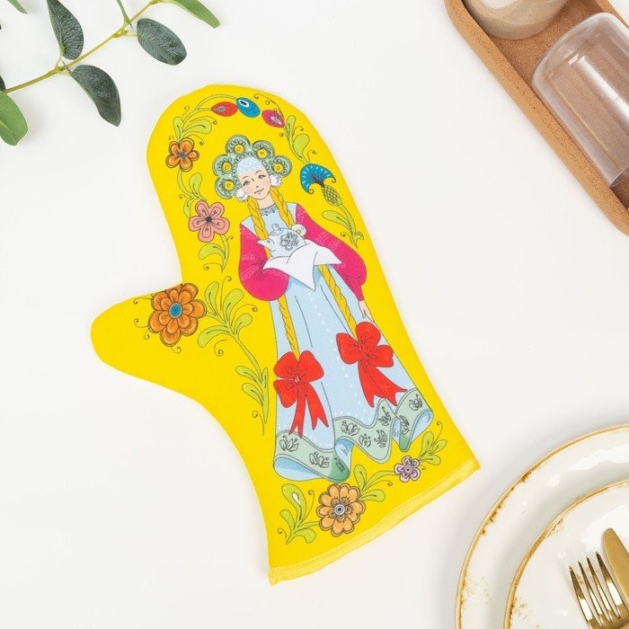 Прихватка-варежка Девица на желтом 30×16 см, 147 г/м2