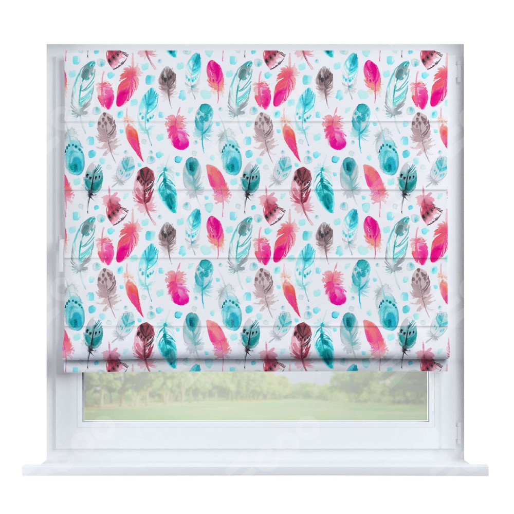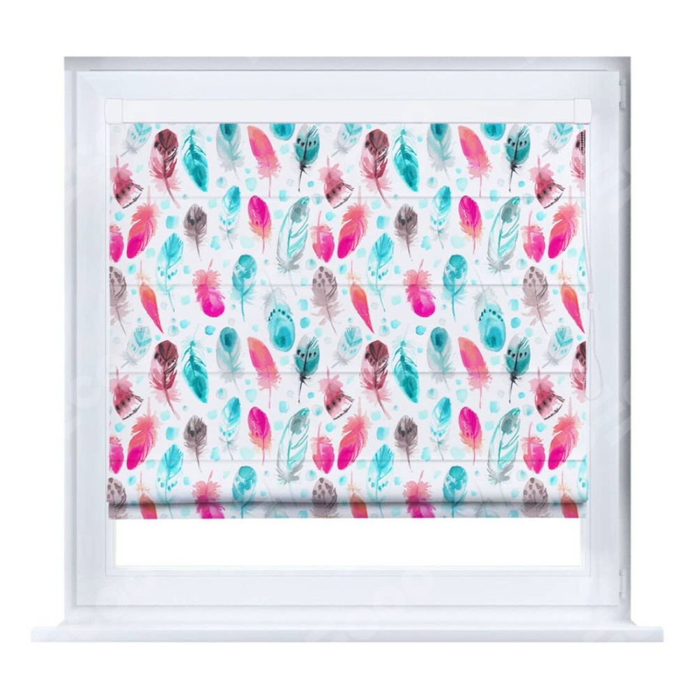 Римская штора производителя «Cortin», устанавливается на створку окна, пошита из ткани блэкаут с нанесением сублимационной печати «Перья». Штора шьётся по индивидуальным размерам, для данного типа римской шторы возможная ширина от 35 до 150 см., высота до 250 см.