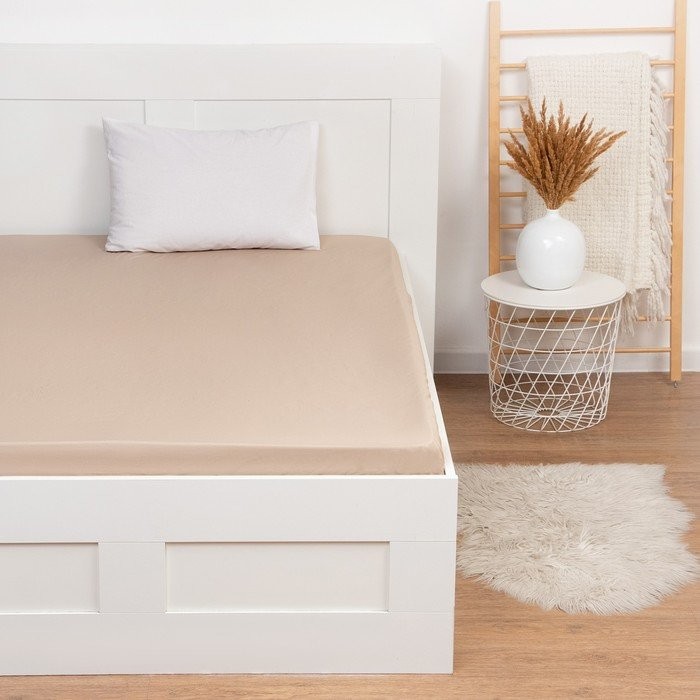 Простыня на резинке «Этель» 140х200×25 см, бежевый, 100% хлопок, перкаль