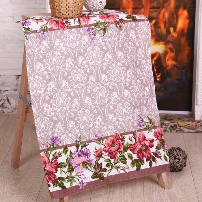 Полотенце 50×70 см, Цветочная кайма, рогожка, 170 гр/м2, хлопок 100%