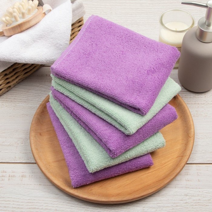Набор махровых полотенец Этель Summer 30×30 см -5шт, 100% хлопок 340 гр/м2