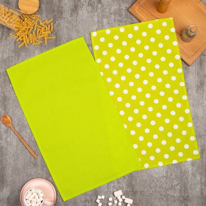 Набор кухонных полотенец Доляна «Зелёное яблоко» 35×60 см — 2 шт, 100% хл, рогожка 165 г/м2