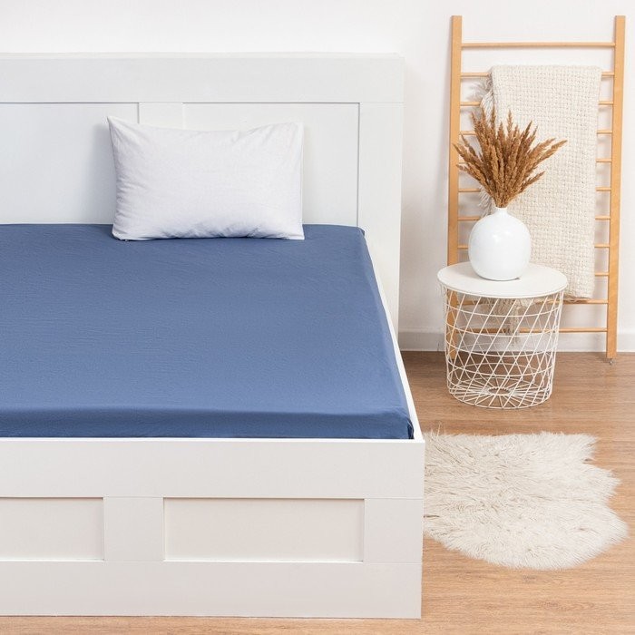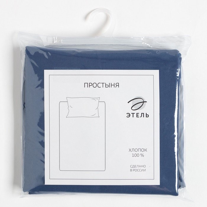 Простыня Этель 160*240 ± 3 см, цв. синий, жатый хлопок, 140 гр/м2, 100% хлопок