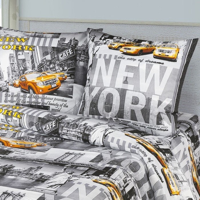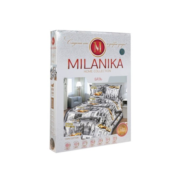 Постельное бельё 1,5сп Миланика Нью-Йорк 143х215см, 145х215см, 70х70см 2 шт, бязь 125г/м, хлопок 100%