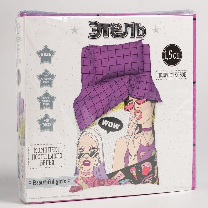 Постельное бельё Этель 1,5 сп «Beautiful girl» 143×215 см, 150×214 см, 50×70 см -1 шт, 100% хлопок, бязь