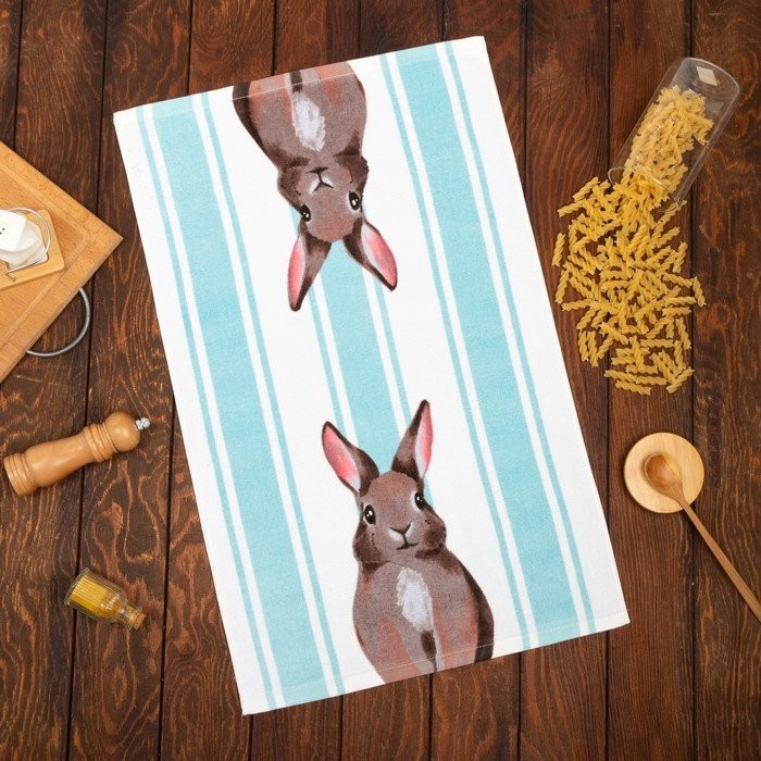 Полотенце махровое Доляна «Зайцы», 40×60±5 см, велюр/махра