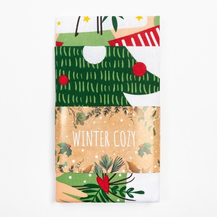 Набор кух.полотенец «Доляна» Тепло Нового года 35×60 см-2шт., 100% хлопок, 160 г/м2