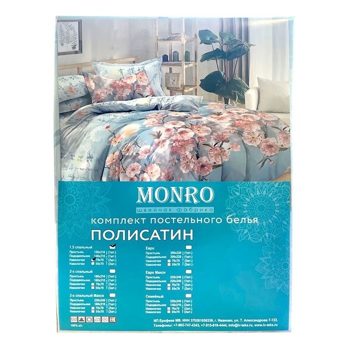 Постельное бельё Monro Евро 200×210, 200×210, 70х70см 2шт полисатин 80г/м, пэ100%
