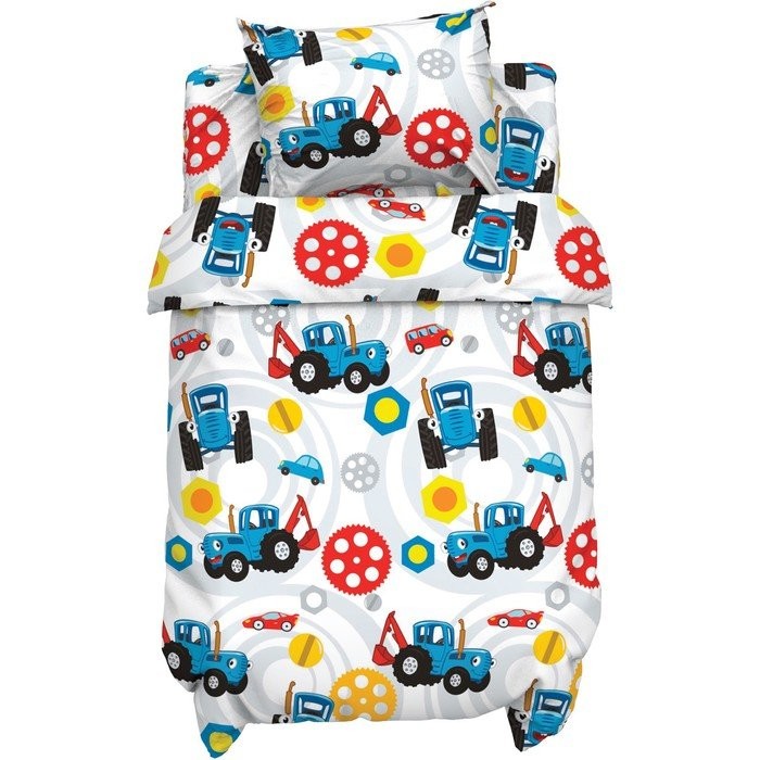 Постельное бельё Синий трактор «Механика» 112×147 см, 60×120+20 см, 40×60 см, 100% хлопок, бязь 125 г/м2