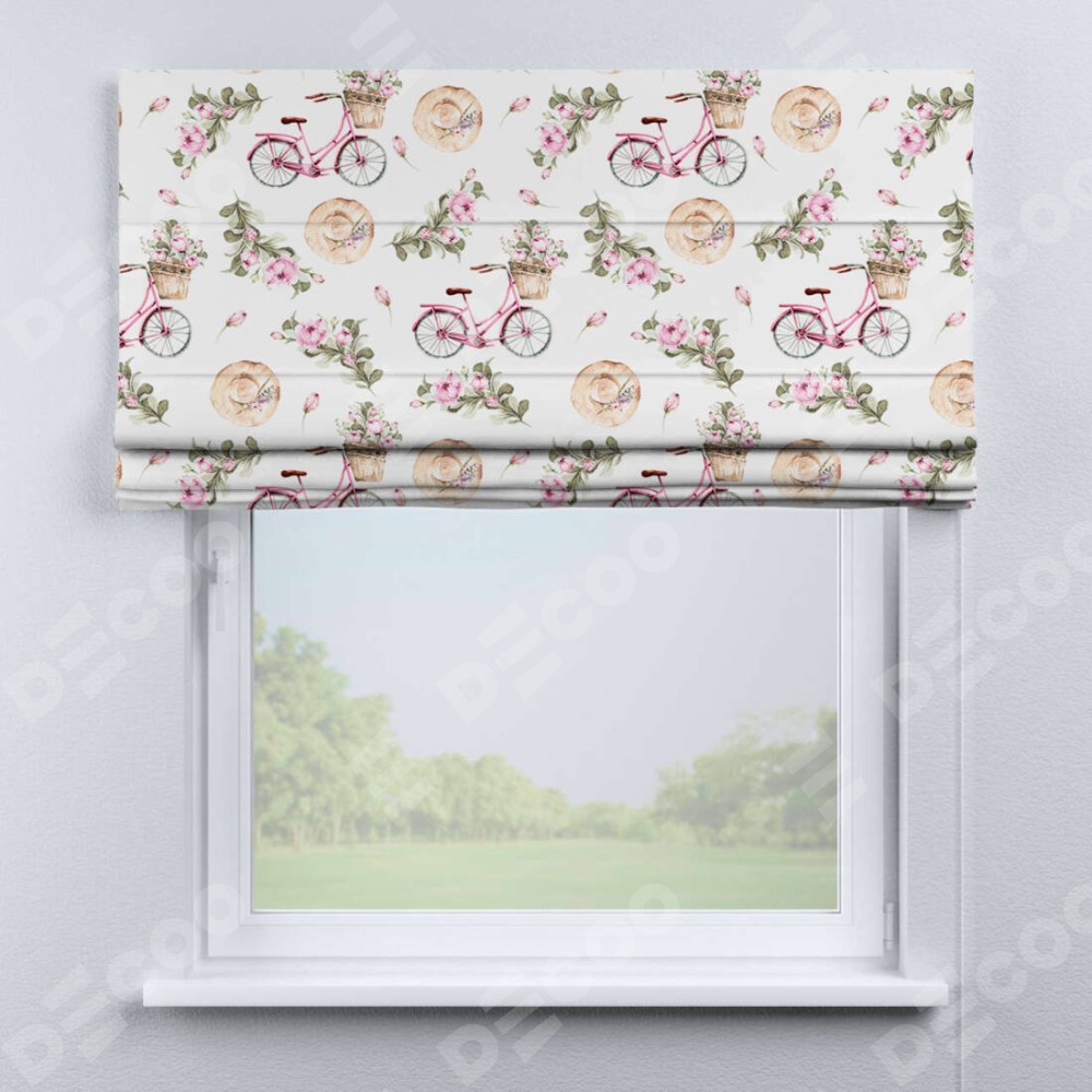 Римская штора «Кортин» для проема «Розовый велосипед»